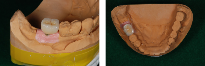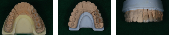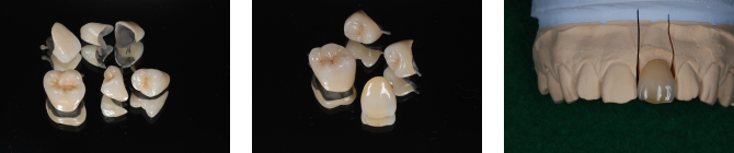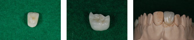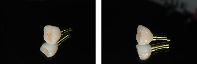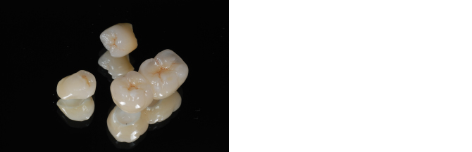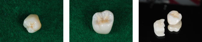 | すべてステイン処置をしてありますので、裂溝や色調が本物の歯に近い状態で仕上げていただいているものです。 本来は真っ白い単体のものなので、土台の歯の色をわざと透かせるように作ってもらったり、真っ白が希望の方はステインを入れない方もいらっしゃいます。 当院はステインを入れる入れないで金額設定は変わりません。 e-max、ジルコニアは金属は使用しません。 ジルコニアのほうが硬いですが透明感がありません。 場所や、咬む力の強弱によって選択します。 メタボンは裏打ちが金属です。金属の上に陶材を盛り付け作製します。 ●e-max クラウン 参考価格50,000 円/ 本 インレー、アンレー(部分的なもの) 参考価格30,000 円/ 本 ![]() ![]() ●ジルコニア クラウン 参考価格80,000 円/ 本 ブリッジ(2〜14歯) 価格は本数によって変わります ![]() ●メタボン クラウン 参考価格70,000 円/ 本 ![]() ![]() ●インプラント体、支台(ジルコニア)、かぶせ物(ジルコニア)こみ 参考価格350,000 円/ 本 ![]() ![]()